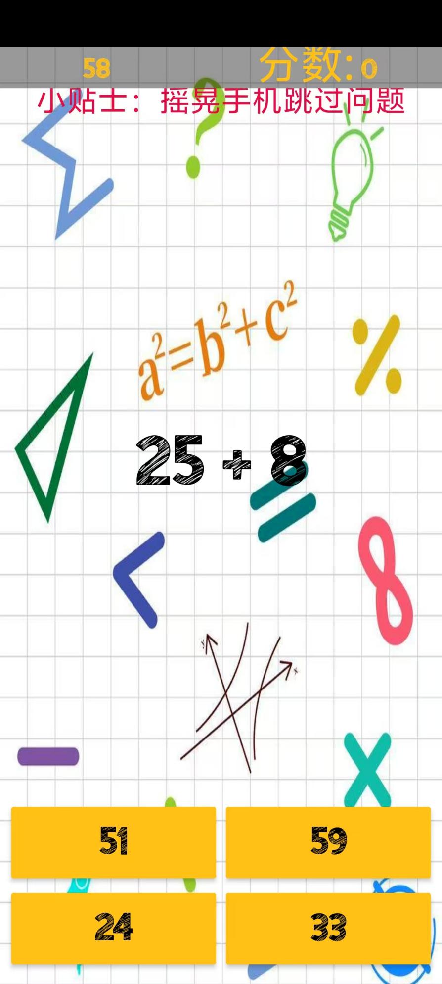 再固定时间内快速计算数学题,爱数学选出正确答案。爱数学